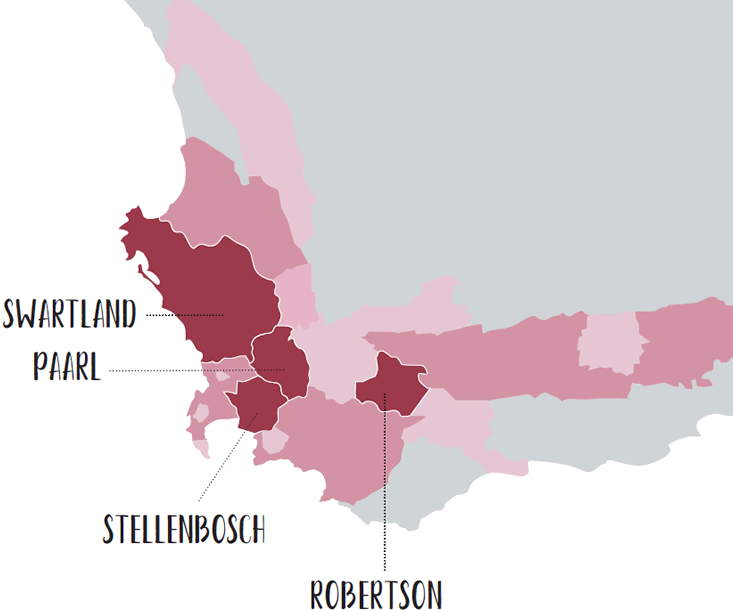 Stellenbosch, Paarl and Robertson are where it does extremely well in SA. The Swartland, to a lesser extent, although there are significant plantings.