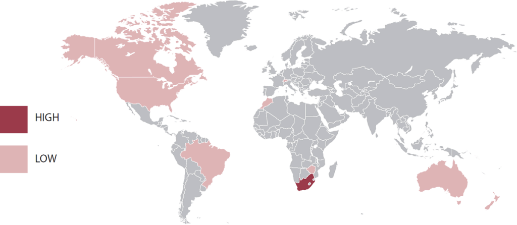 Pinotage is grown in Australia, Brazil, Canada, Germany, Israel, New Zealand, United States, and Zimbabwe. But South Africa is where the grape originated, and where the largest volumes and most meaningful wines are produced.