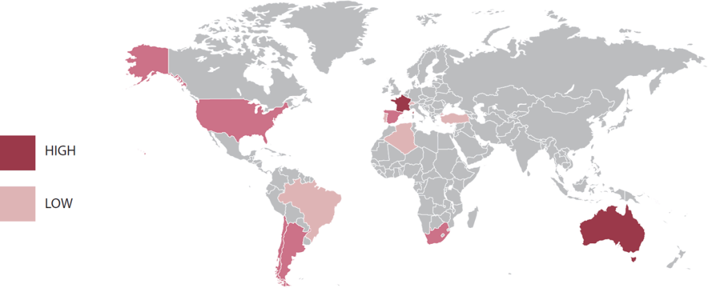 South Africa has the fourth biggest plantings of Syrah in the world, making up 10% of total vine plantings in South Africa and the second most planted red grape in South Africa.